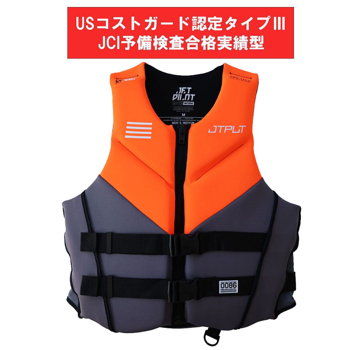 ライフジャケット ライフベスト 軽量 速乾 JCI予備検査合格実績型 チャコール オレンジ PWC ジェットスキー 水上バイク マリンスポーツ ウオータースポーツ ネオプレン ジェットパイロット